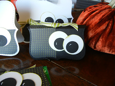 | Those of you who know me, know I don't make these cute little treats to give to kids.....they dont care, give them candy. But mom's love them, so if you are trick-r-treating in my neighborhood mom's, here is your treat! If you are interested in joining one of my classes or Stamp Club, please email me at sinclairkw@aol.com and join us....New stamp club starts in January and I have room! |